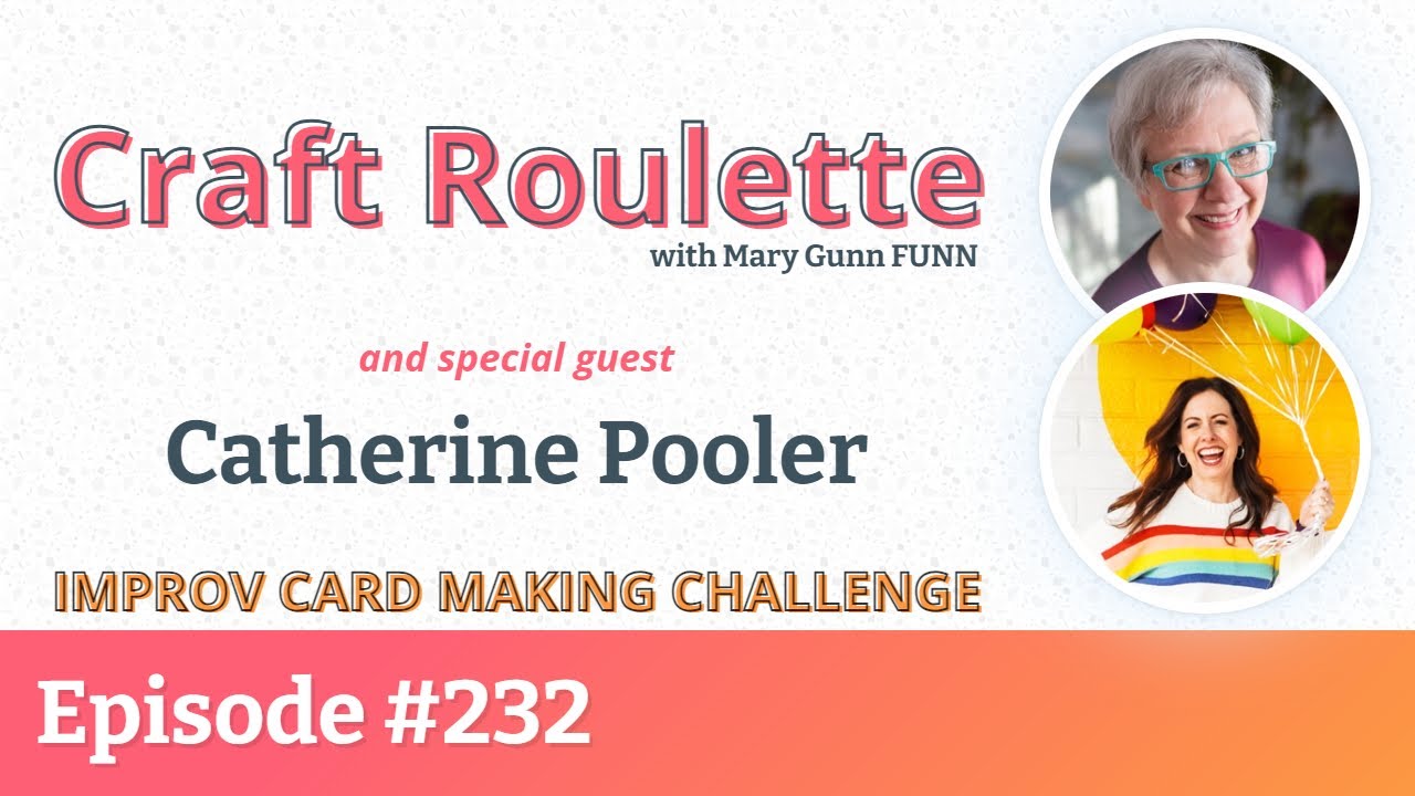 Craft Roulette episode 232, hosted by Mary Gunn FUNN on September 13, 2024, featured special guest Catherine Pooler. The crafting challenge involved creating a French bulletin board using the color inspiration of winter desserts, incorporating balloons as an element, and including beads in the project.